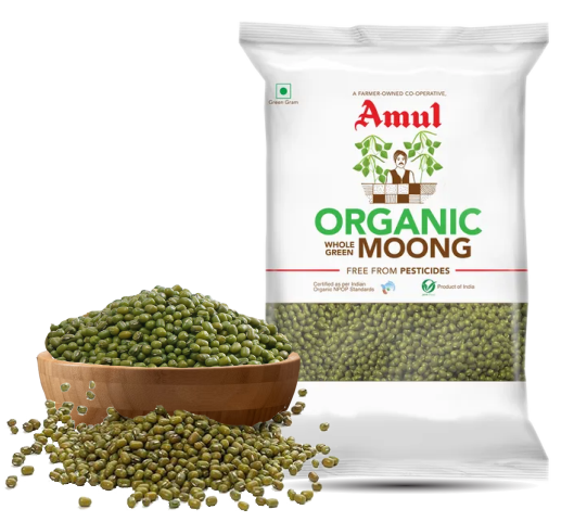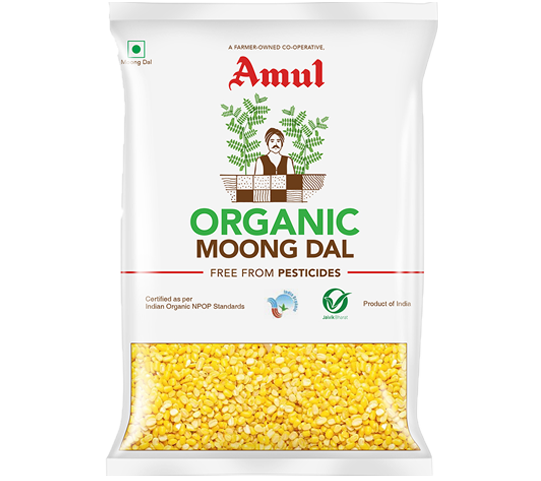 Whole Moong has Good protein content, Naturally cholesterol free and High fibre content. Moong is source of protein, carbohydrates, vitamin A, potassium and dietary fibre. The Amul Organic Whole Moong is free of harmful pesticides and has vacuum packaging which eliminates the risk of any kind of insect attack. Switch to organic today to start your Journey towards Healthier Tomorrow.